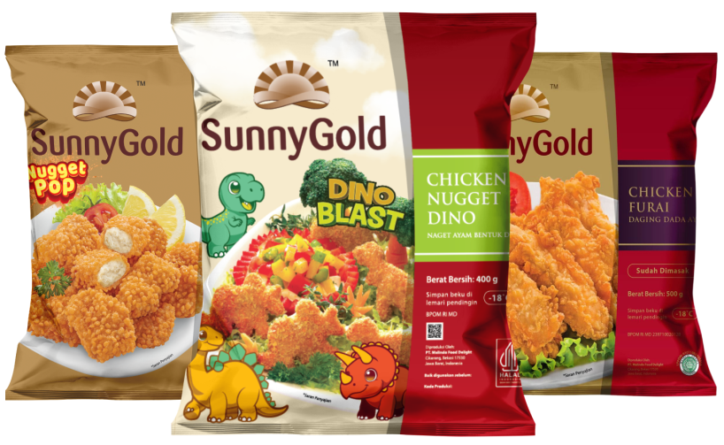 Sunny Gold Furai, olahan berasal dari 100% dada ayam padat dan crunchy.